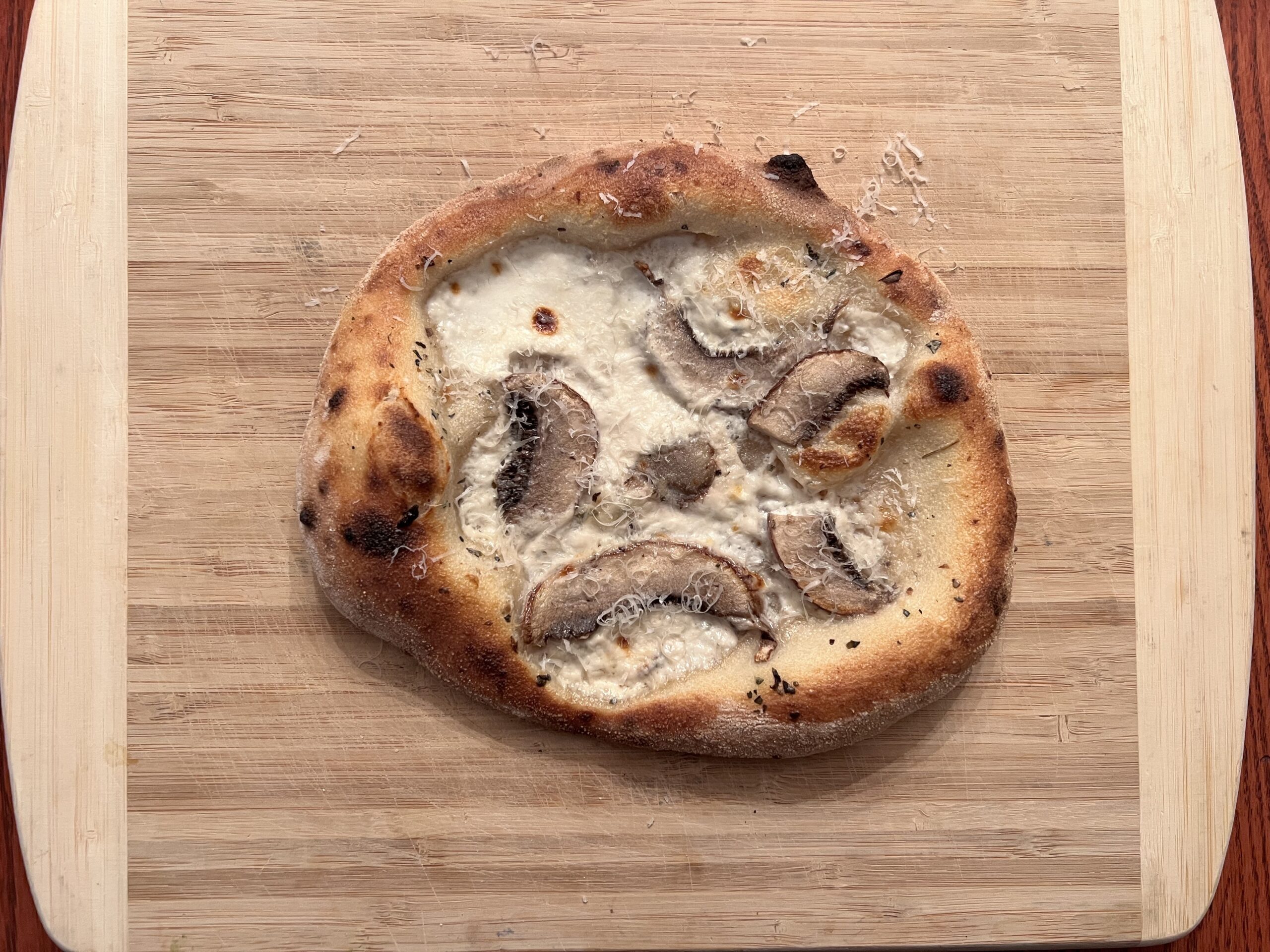 Portabella mushrooms, basil, cream, topped with grated parmesan cheese and honey